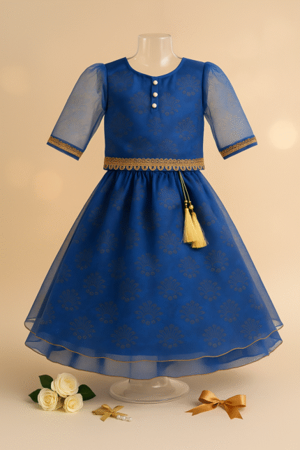 Royal Radiance Co-Ord Set – Blue & Gold Boutique Ensemble for Girls
