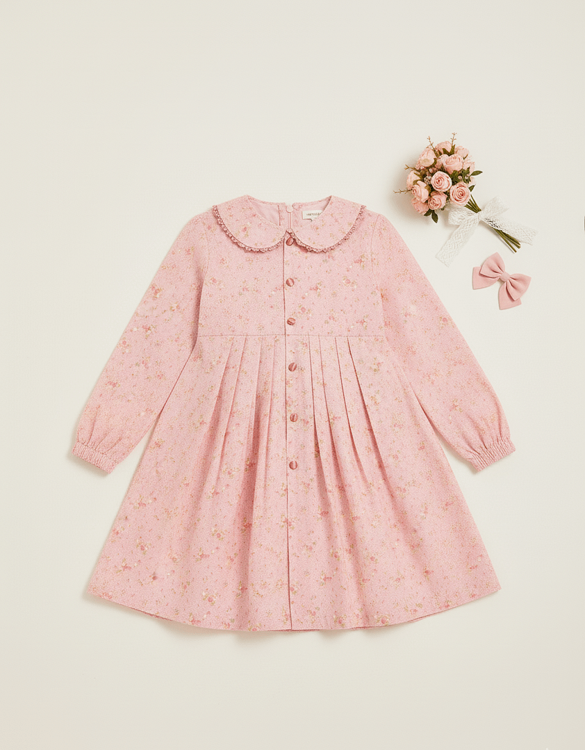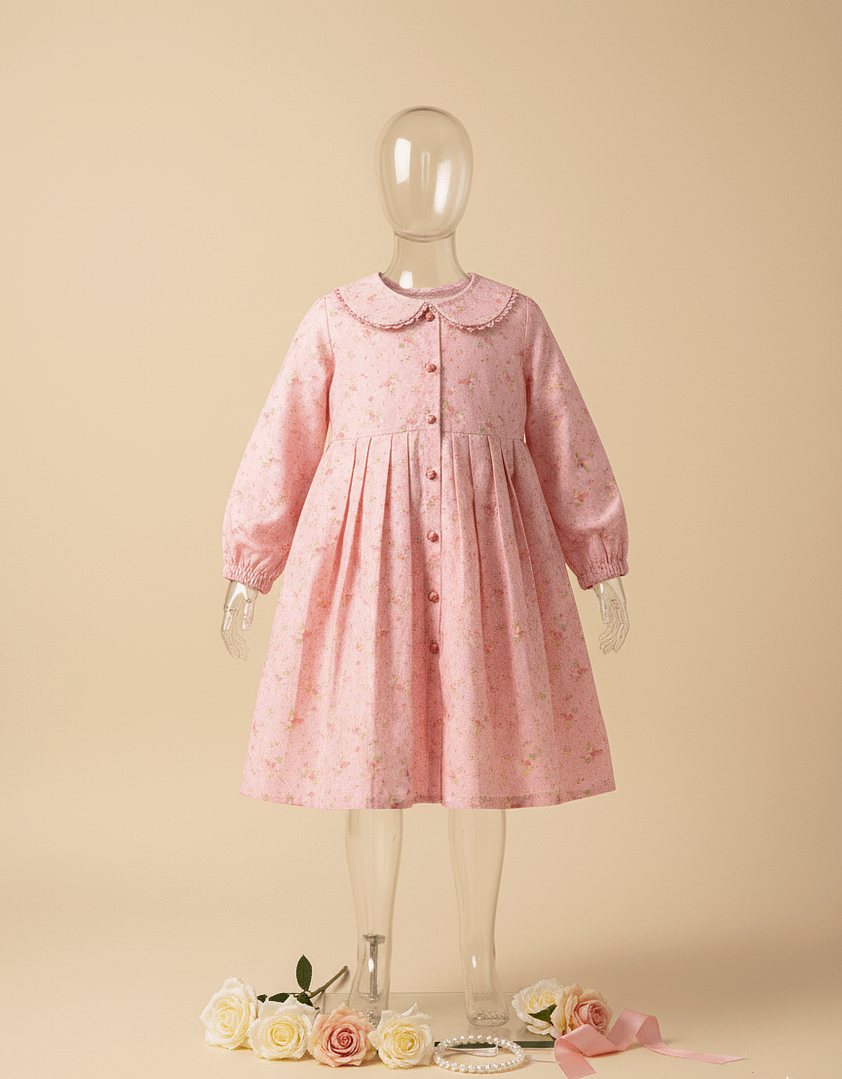 Rosy Meadow Button Dress – Classic Floral Everyday Outfit for Girls