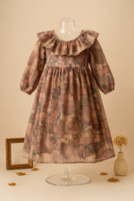 Autumn Muse Ruffle Dress – Artistic Earth-Toned Boutique Chiffon Dress for Girls