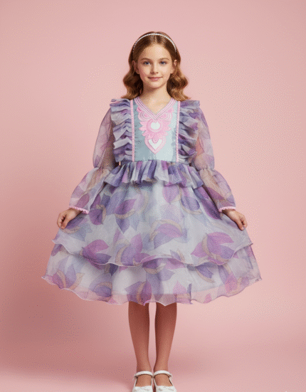 Lilac Bloom Princess Dress – Elegant Floral Party Outfit for Girls