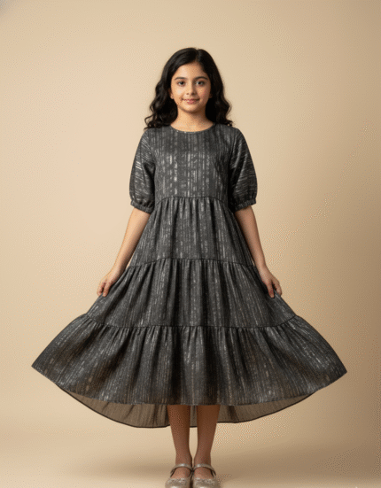 Midnight Grace Tiered Dress – Elegant Boutique Evening Dress for Girls