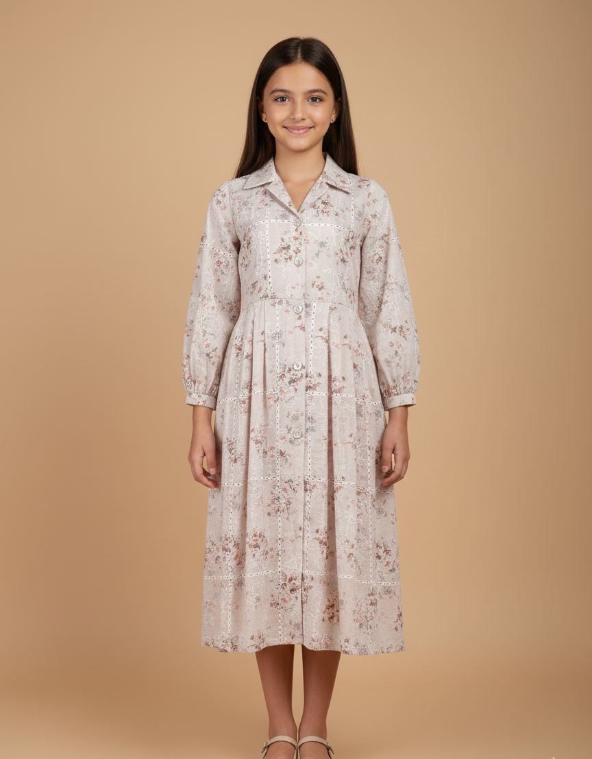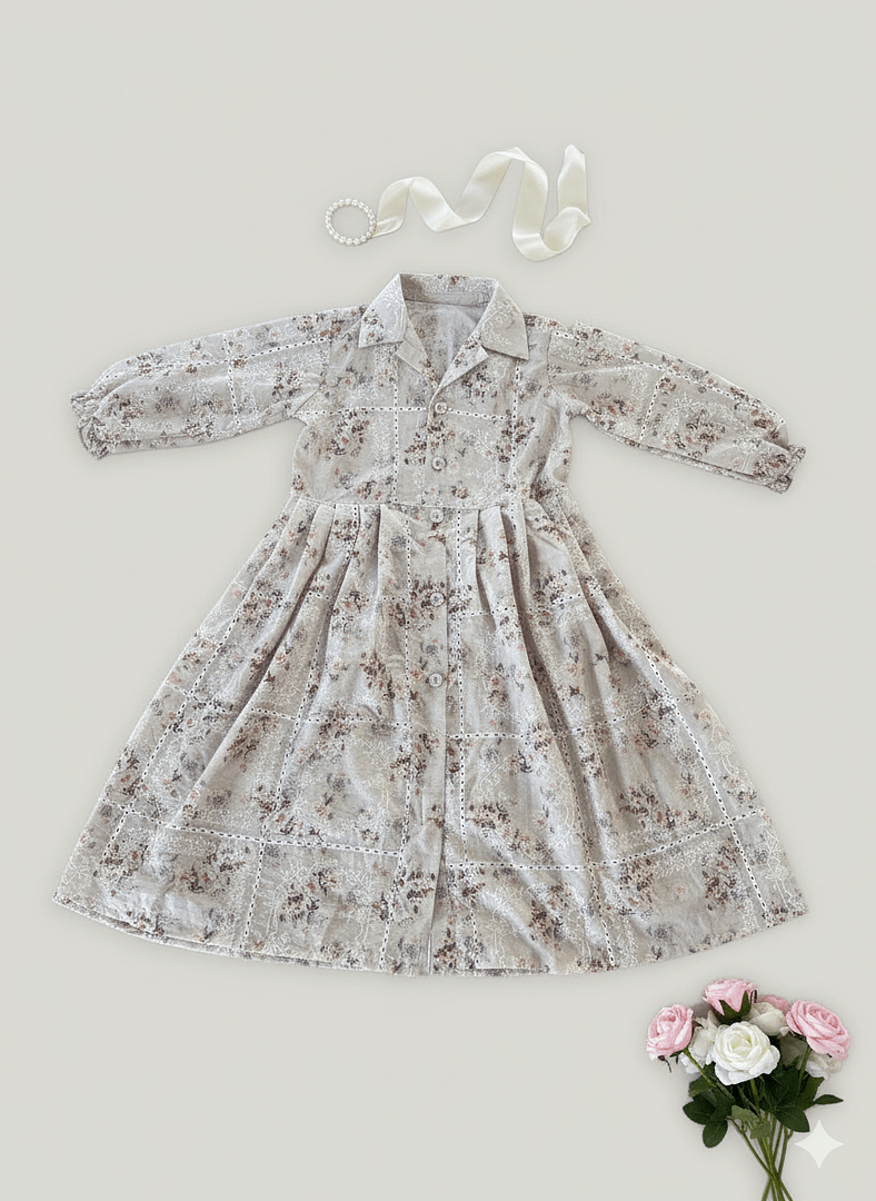 Blush Garden Button-Down Dress – Vintage Floral Lace Dress for Girls