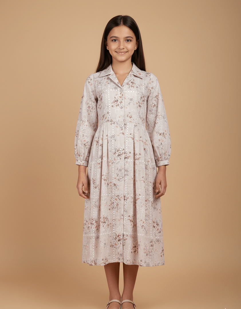Rosy Meadow Button Dress – Classic Floral Everyday Outfit for Girls