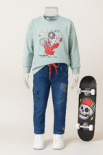 Be the first to review “CoolMind Graphic Denim Set – Mint Blue Sweatshirt for boys”
