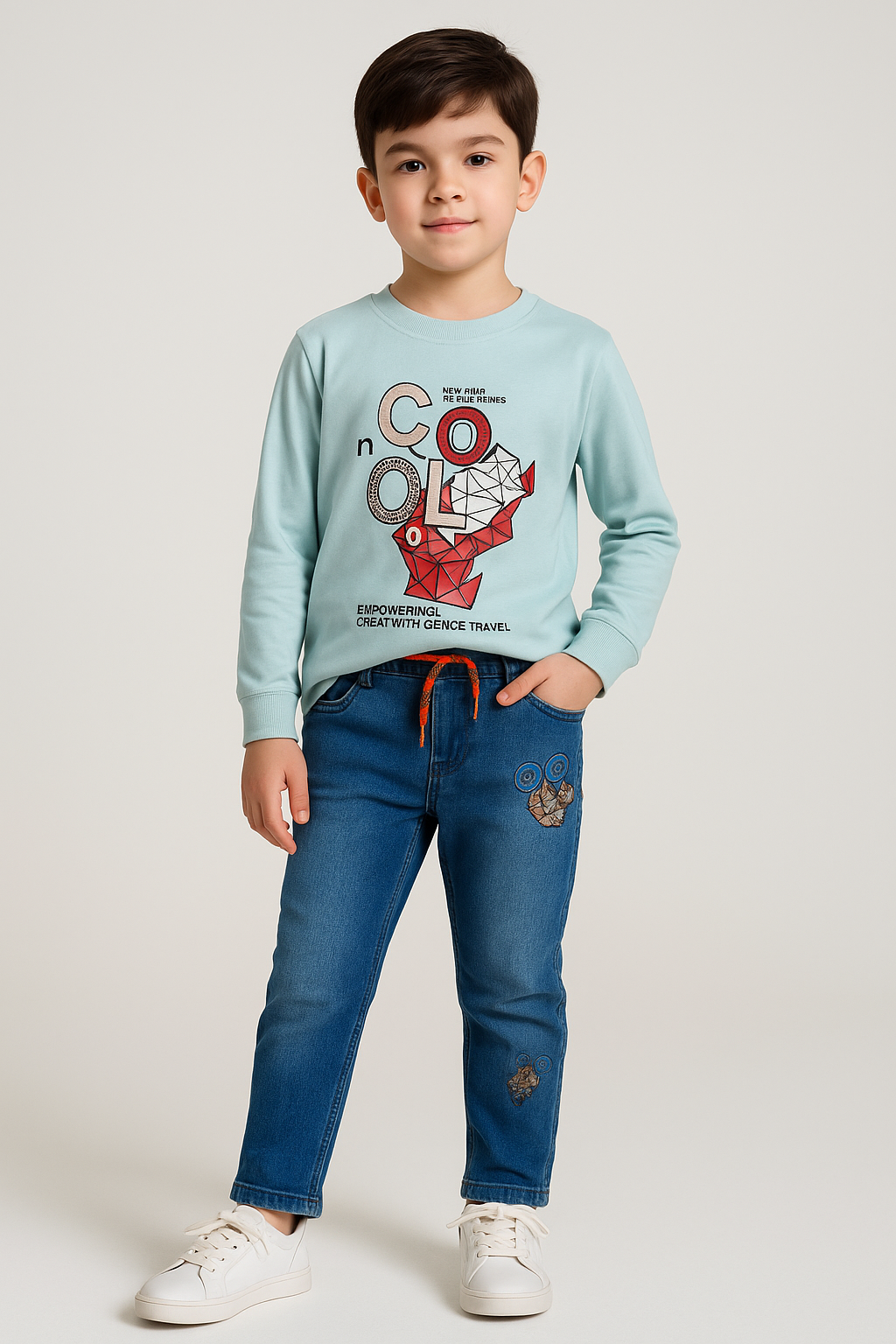 CoolMind Graphic Denim Set – Mint Blue Sweatshirt for boys