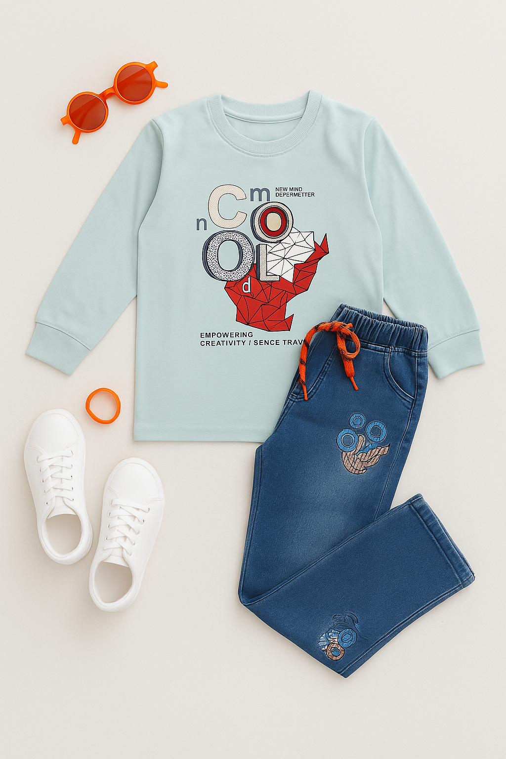 The CoolMind Graphic Denim Set blends comfort with creativity in every stitch.