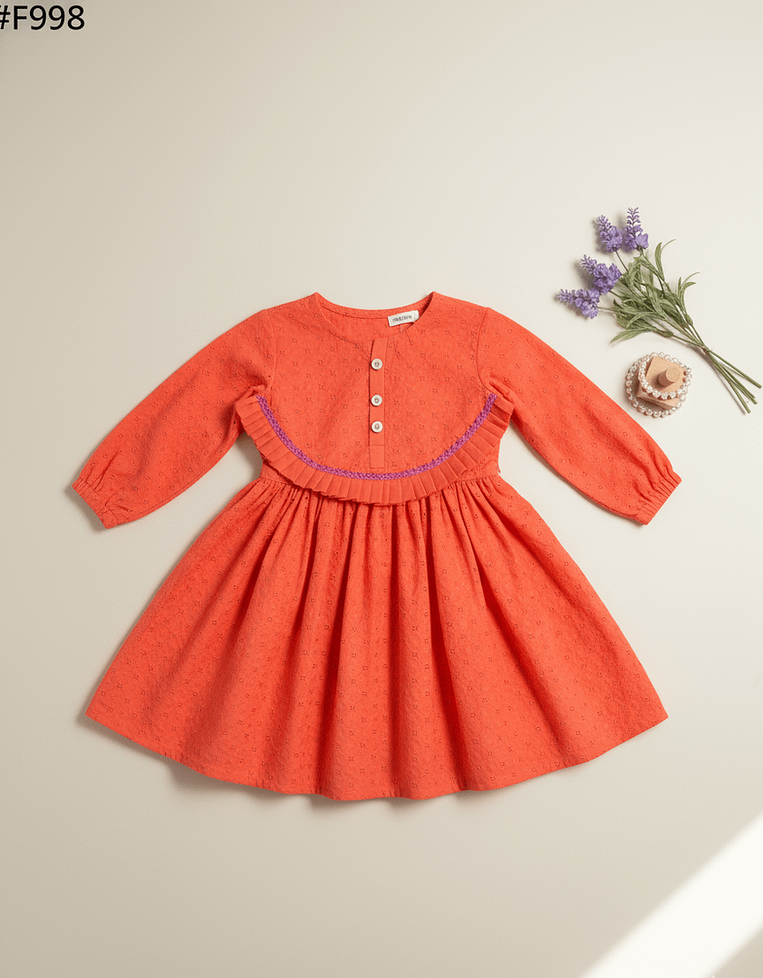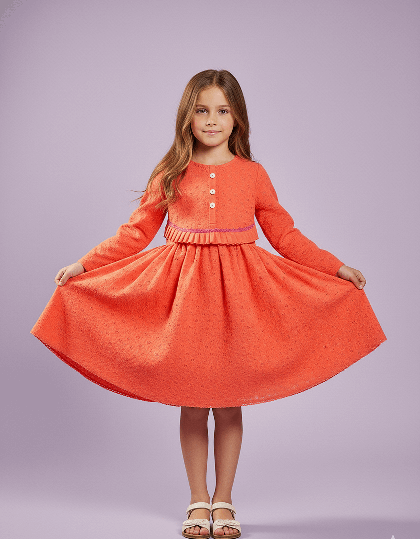 Coral Charm Dress – Vibrant Eyelet Cotton Boutique Dress for Girls