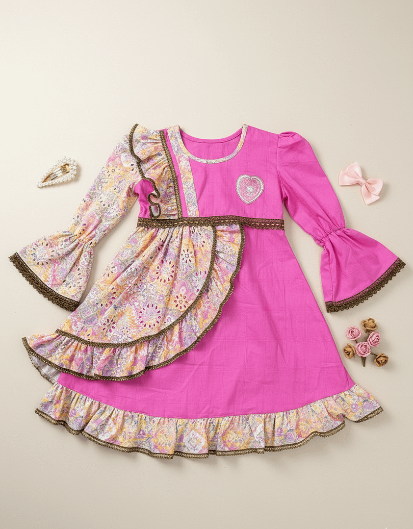 Make her day brighter with the Fuchsia Ruffle Heart Dress, designed for girls who love color and confidence.