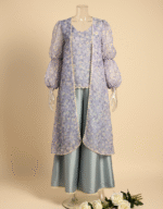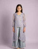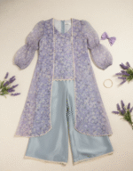 Dreamy and delightful, the Lilac Bloom Co-Ord Set pairs the softness of floral lilac organza with the shimmer of powder-blue satin for an effortlessly elegant boutique look.