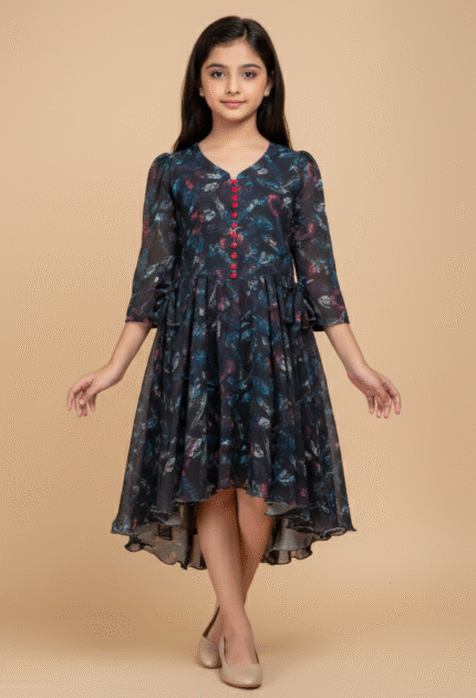 Crafted with elegance and charm, the Midnight Maple Princess Dress is a blend of deep navy tones, graceful shimmer, and delicate detailing.