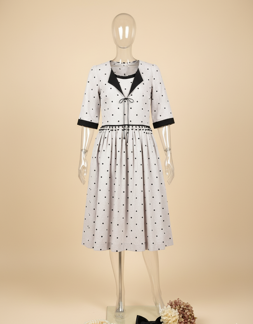 The Polka Grace Vintage Dress blends timeless elegance with playful charm.