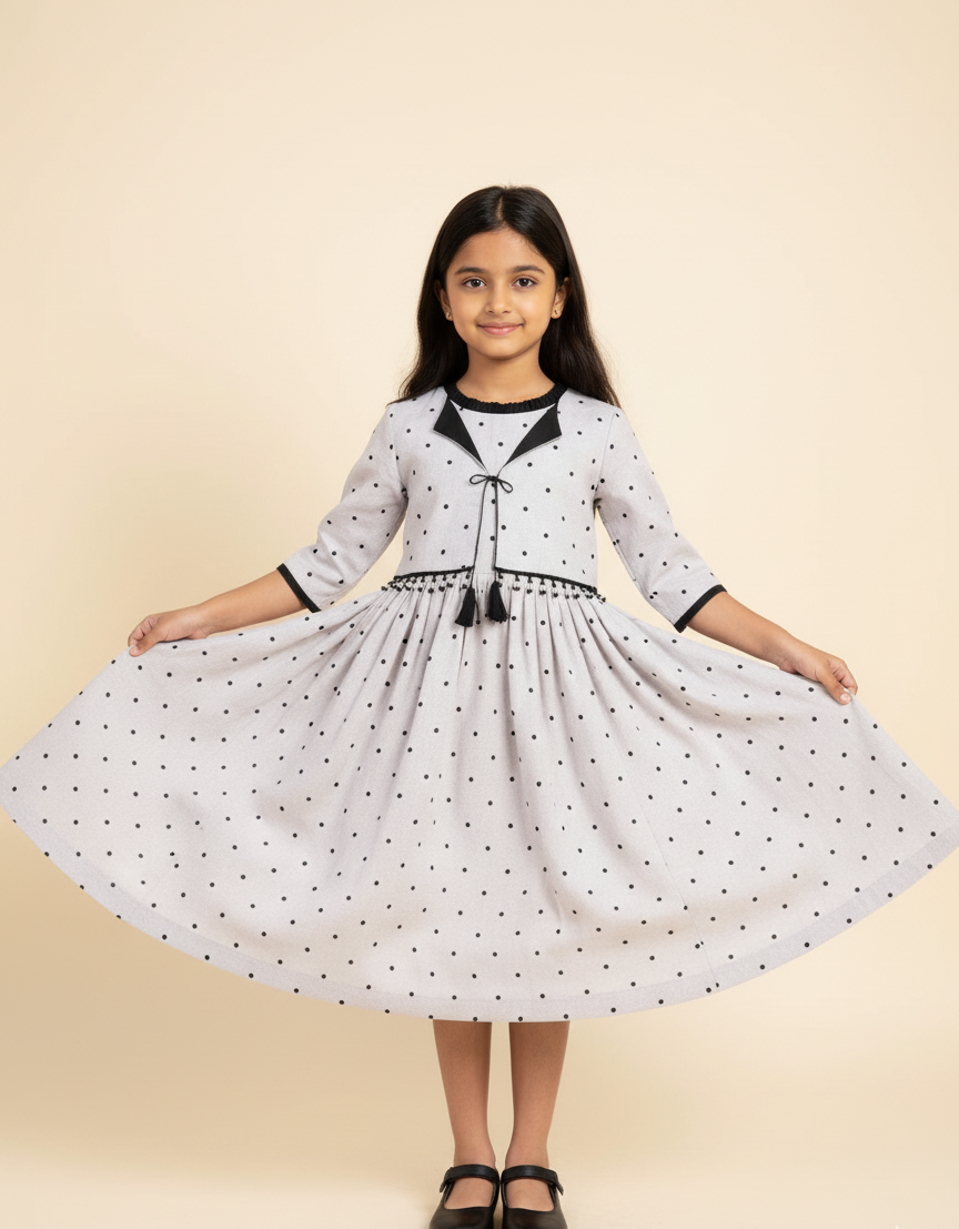 Polka Grace Vintage Dress – Classic Black & White Boutique Dress for Girls