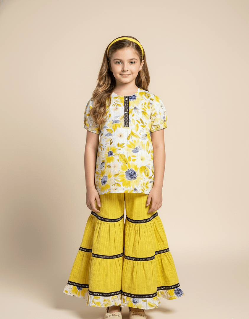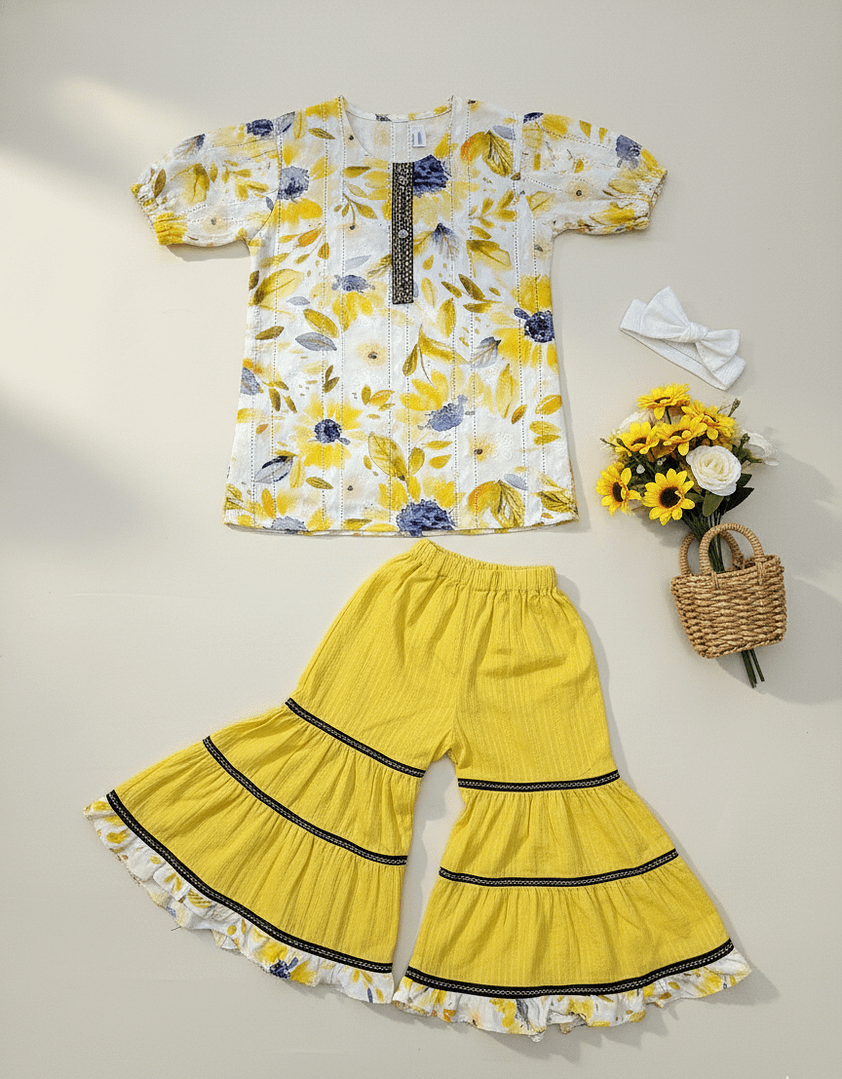 Sunshine Bloom Co-Ord Set – Yellow Floral Boutique Outfit for Girls